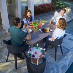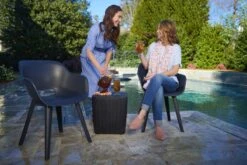 De Allibert Akola Tuinstoel is gezien de uitstraling, textuur en zithoogte ideaal te combineren met de volgende tuintafels van Allibert en Keter: