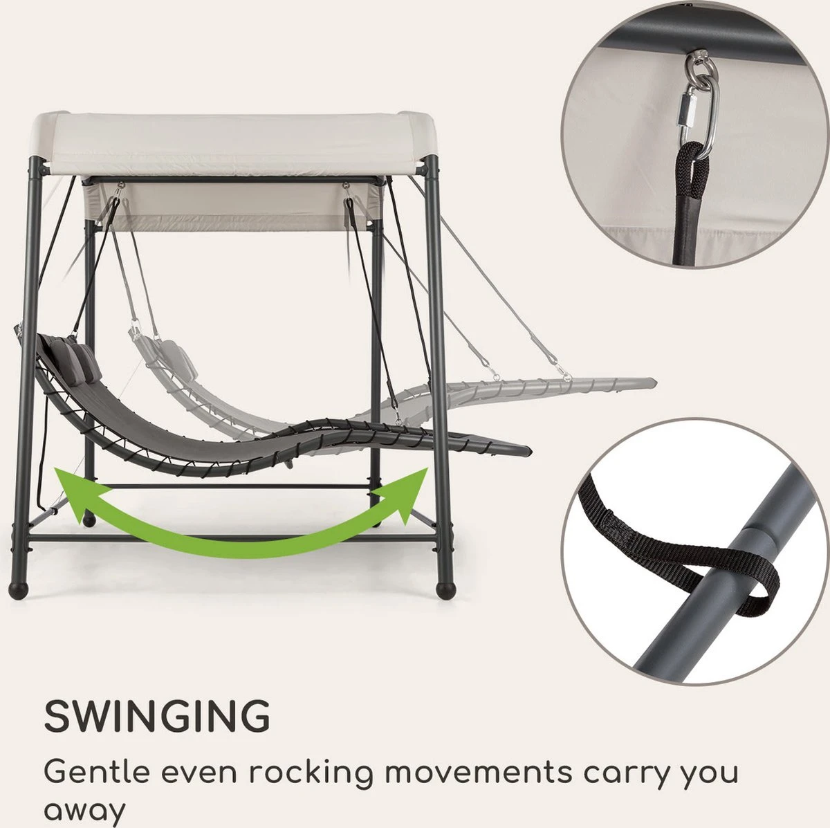 Blumfeldt Palermo Schommelbank – Hollywoodschommel 130 X 207 Cm – Ligbed Met Dak – Schommelstoel Voor 2 Personen – Tuinbank Inclusief Nekkussens – Stalen Frame En Polyester Dak – Grijs