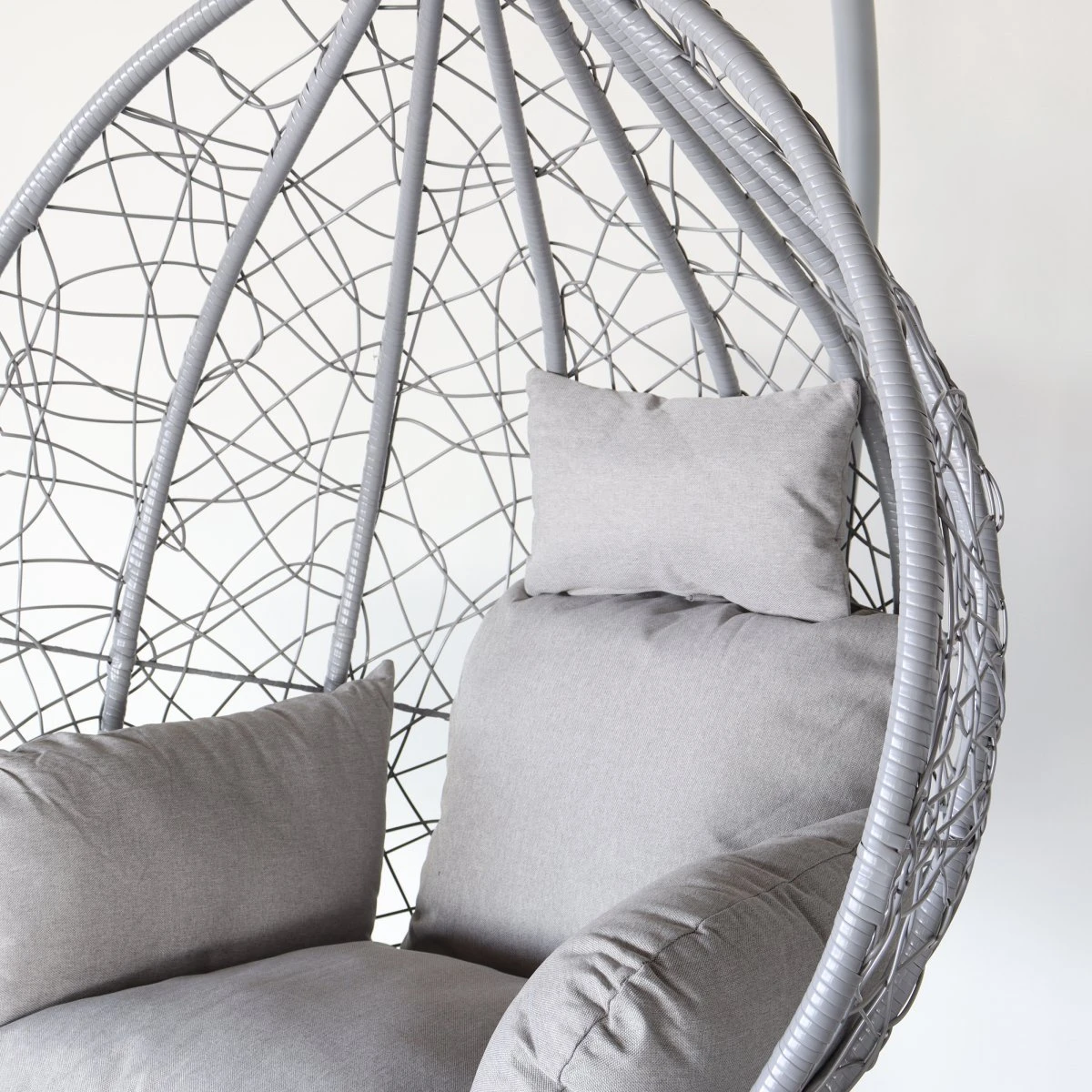 Deze moderne grijze hangstoel heeft een mooie Egg vorm. Hierdoor kan deze hangstoel voor zowel werk als voor ontspanning gebruikt worden. Het frame van de stoel is gemaakt van metaal, de stoel zelf is gemaakt van Wicker met metalen ondersteuningen. Hierdoor kan de hangstoel zowel binnen als overkapt buiten geplaatst worden, mits jij er zorg voor draagt dat deze schoon en droog staat. Het is namelijk nog steeds metaal, wat in een vochtige omgeving kan gaan roesten! Deze stoel staat leuk in zowel de woon- en slaapkamer als in de tuin. Geniet van de zonnestralen terwijl je lekker aan het lezen bent of lees voordat je naar bed gaat nog even comfortabel in deze hangstoel. Ook leuk voor kinderen om in de slaapkamer te hebben!