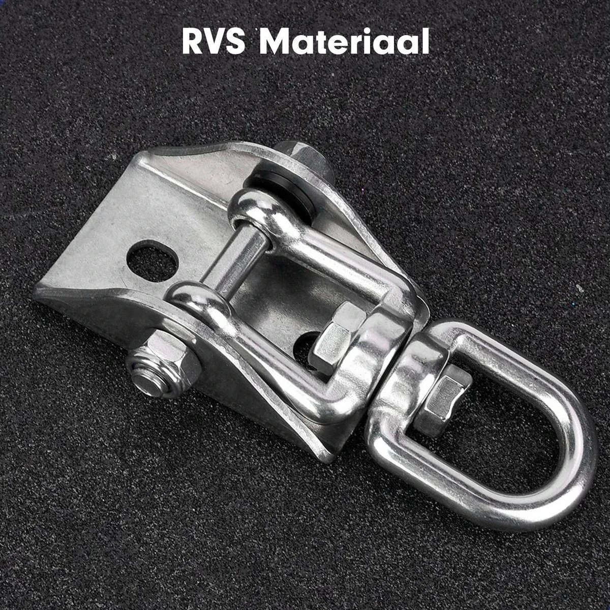 Luxe Ophangsysteem – 180° Schommelen, 360° Roteerbaar – Plafondhaak – Ophanghaak – Hangstoel Buiten – Hangstoel Binnen – Schommelstoel – Schommel – Bokszakken – RVS – Nederlandse Handleiding –