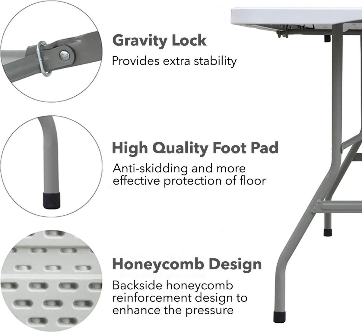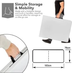 Het lichtgewicht ontwerp, draaggreep en auto-lock maken het zeer eenvoudig de tafel op te slaan en voor iedereen gemakkelijk op te zetten en neer te halen.