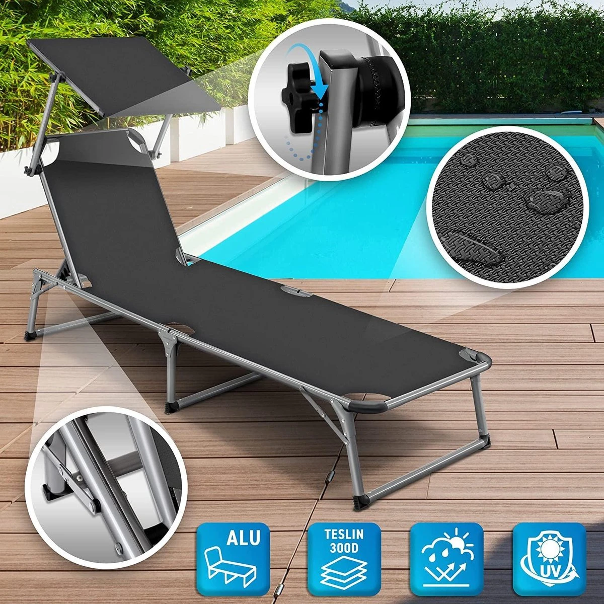 Zonnebed met zonneklep