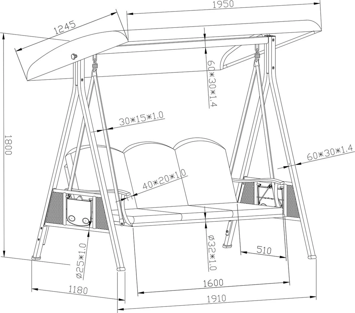 SORARA® Luxe Schommelbank Met Zonnescherm – Bruin – Zware Kwaliteit.