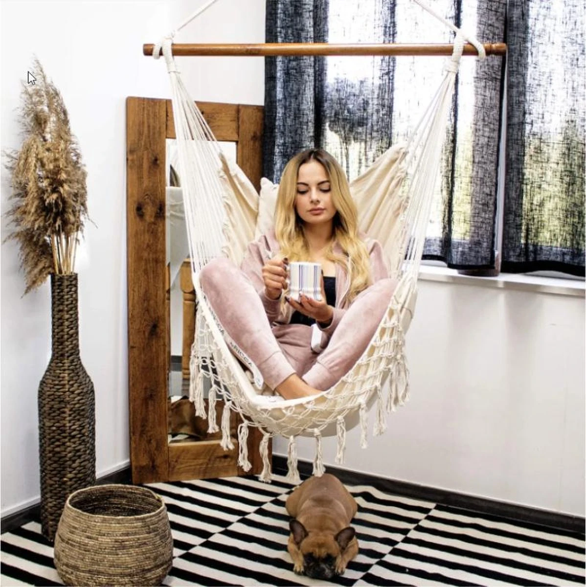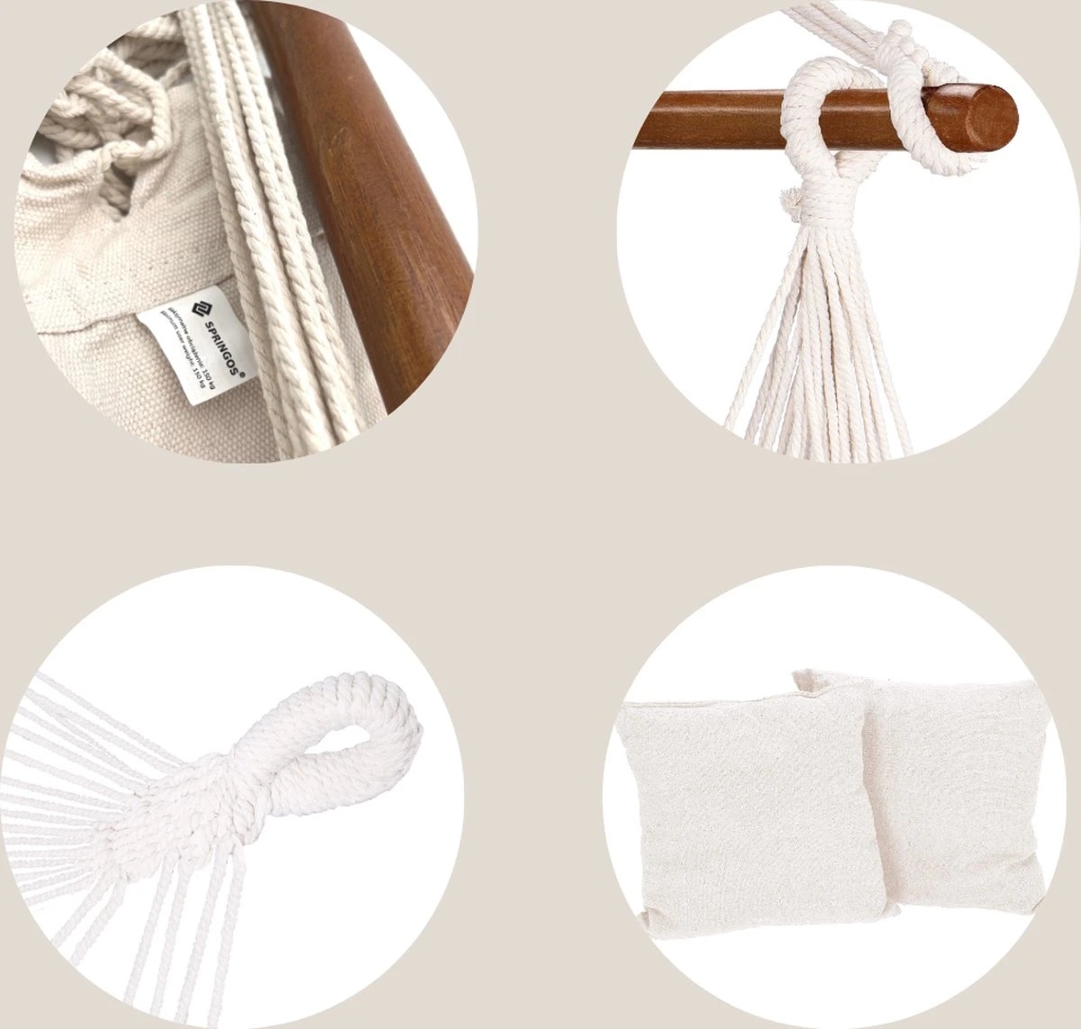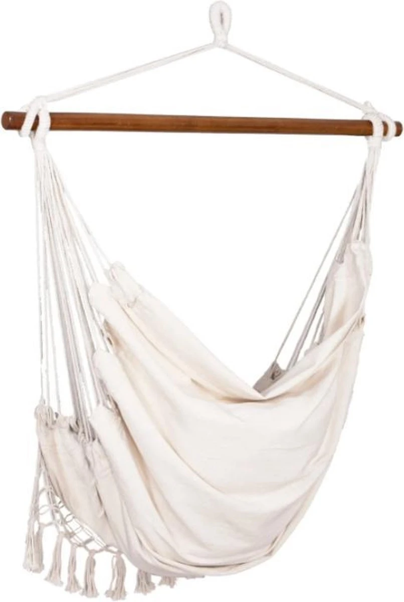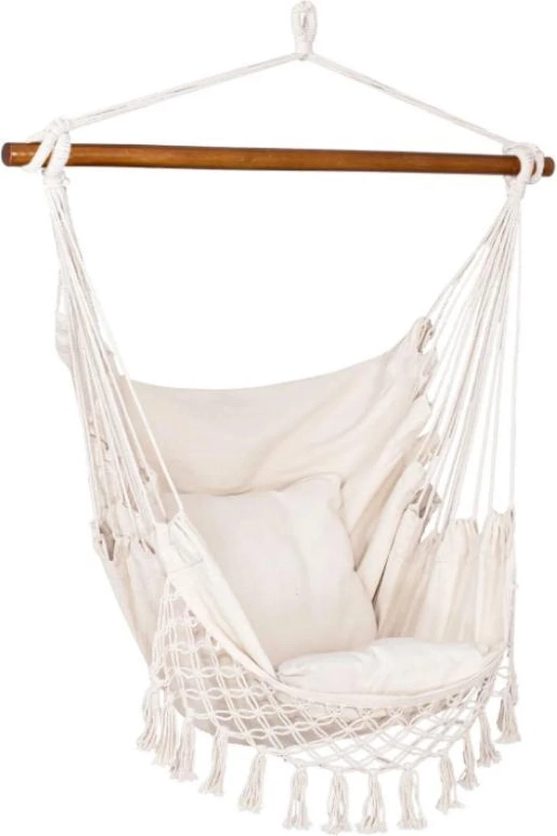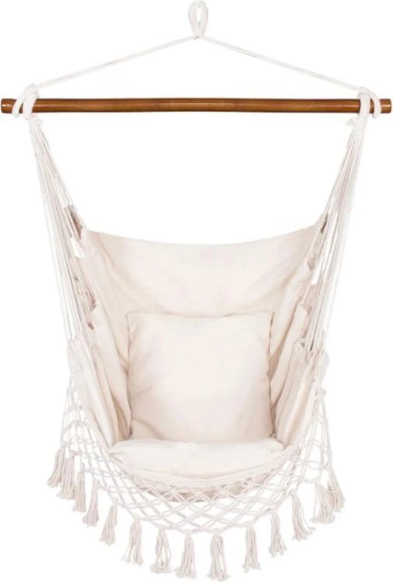 Springos Hangstoel | Binnen & Buiten | Met 2 Kussens | Boekenvak | Ook Voor Kinderen | Belastbaar Tot 150 Kg | Wit