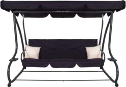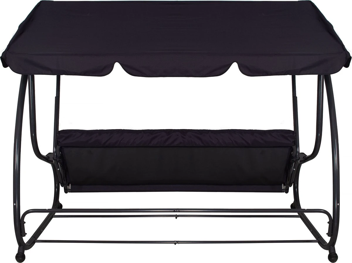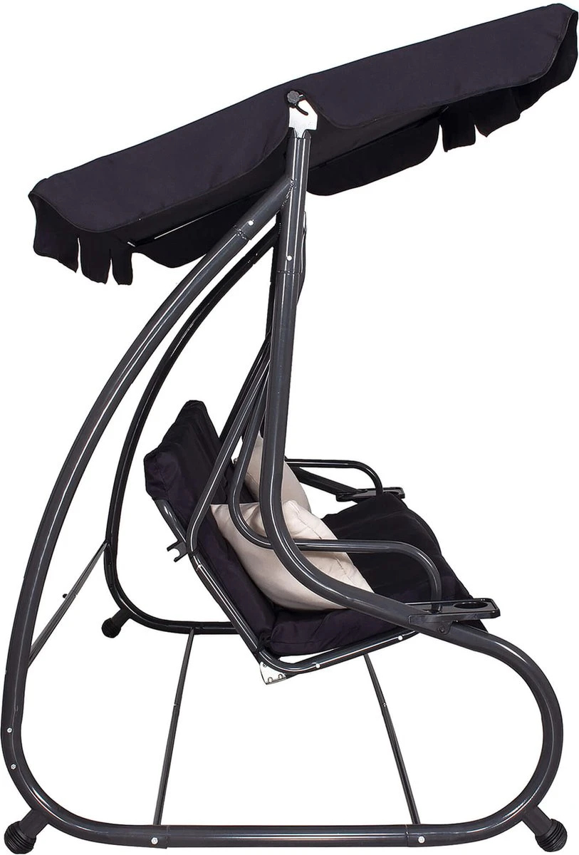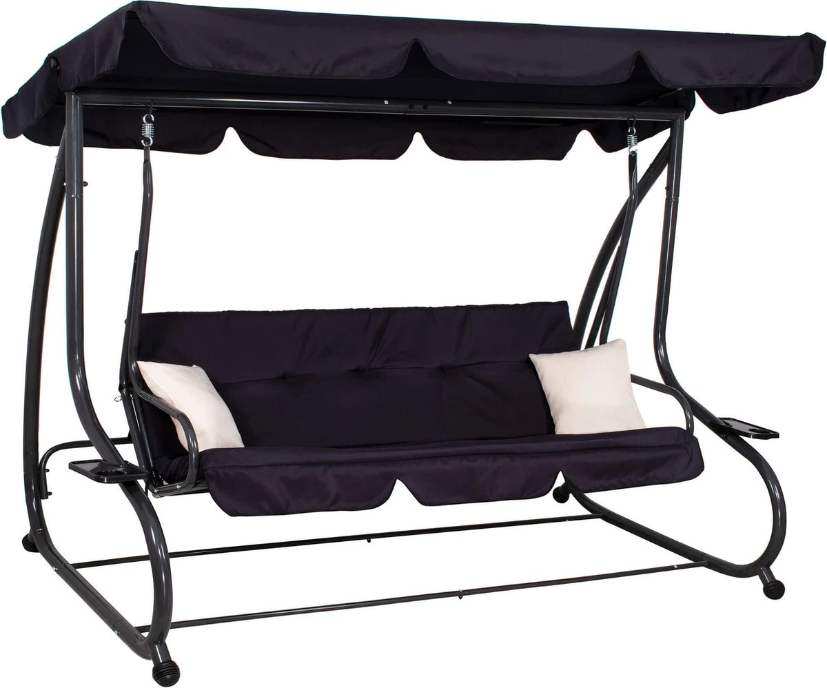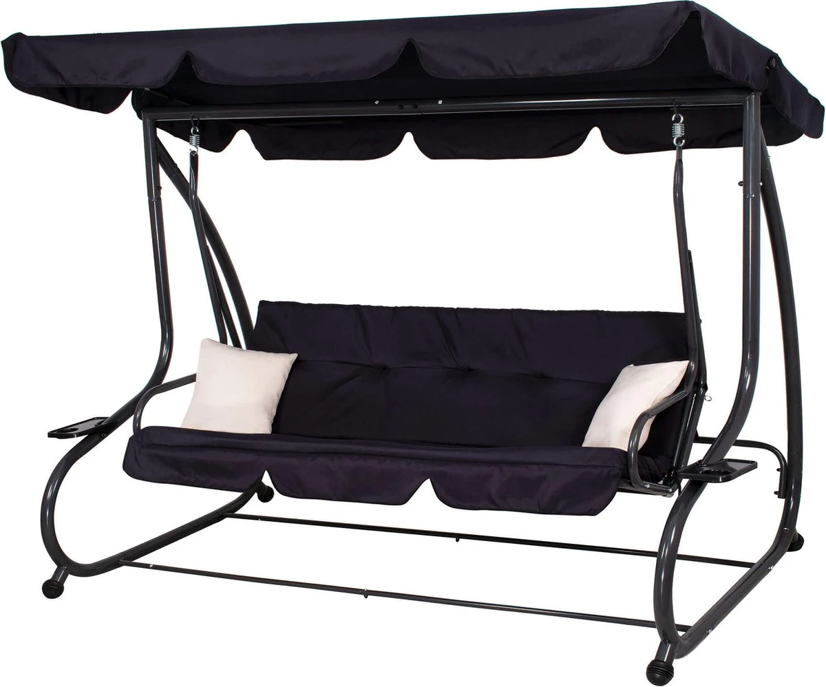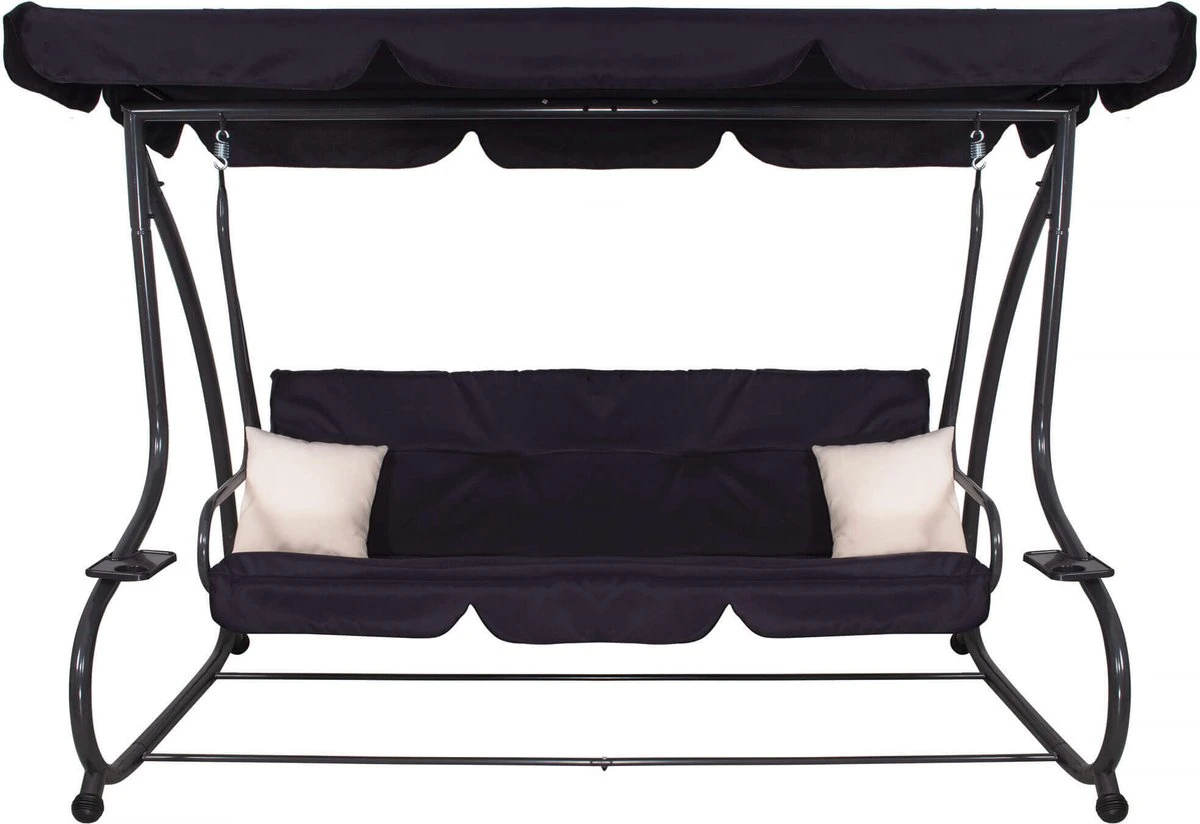 Springos Schommelbank | Linda-Schommel | 3-zits | Waterafstotend | Inclusief 2 Kussens | Verstelbare Luifel | 162 X 200 X 120 Cm | Zwart