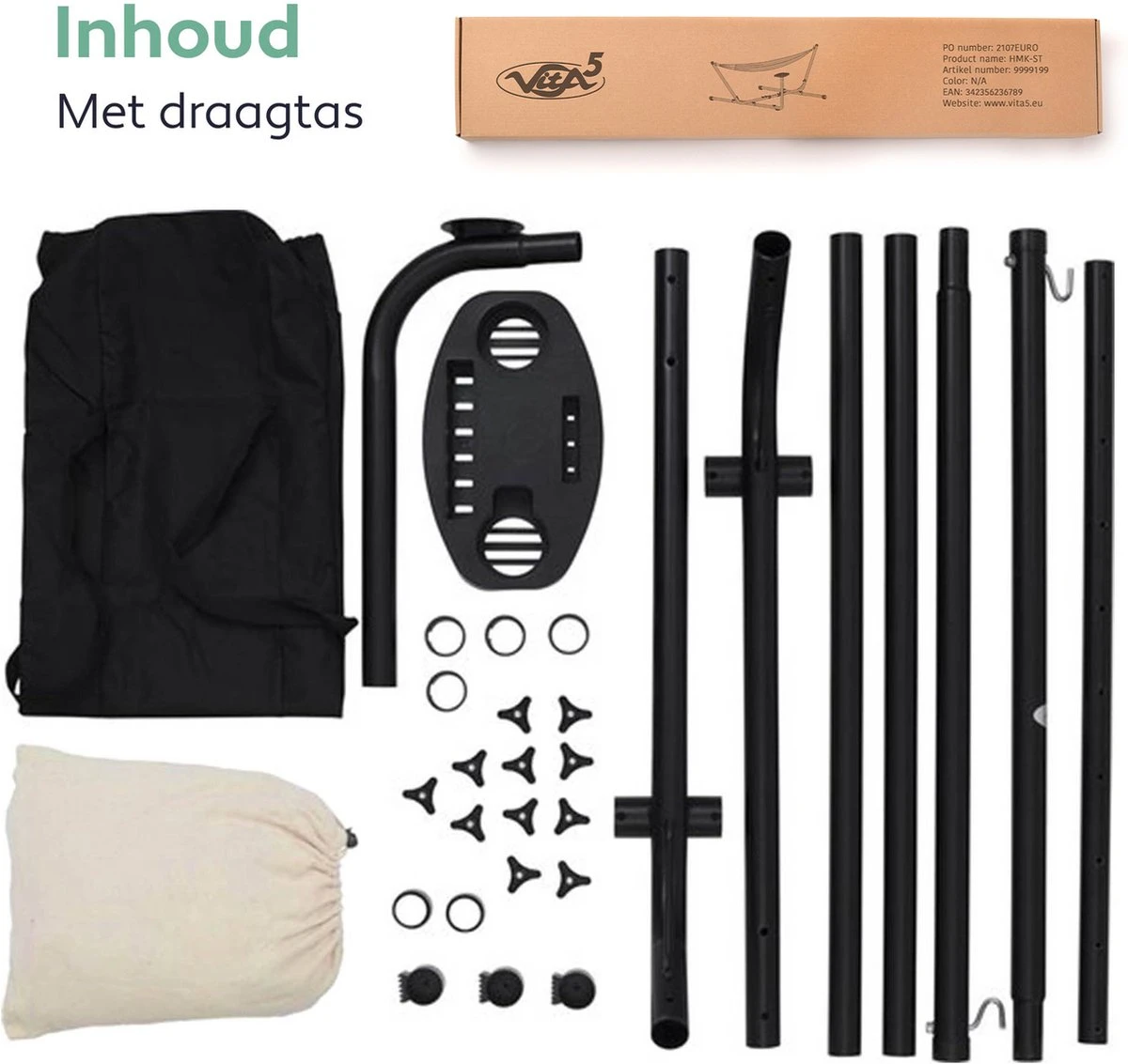 Vita5 Hangmat Met Standaard – 2 Persoons – Incl. Bekerhouder – 205kg Draaggewicht – Beige/Wit