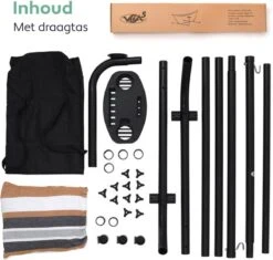 Vita5 Hangmat Met Standaard – 2 Persoons – Incl. Bekerhouder – 205kg Draaggewicht – Blauw/Wit/Bruin